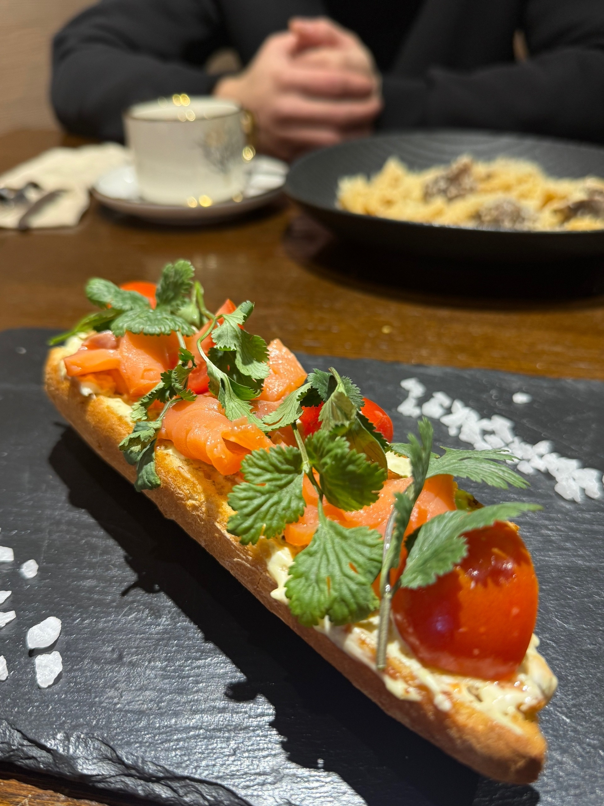 Нежный песто-соус в сочетании с творожным сыром и семгой домашнего копчения